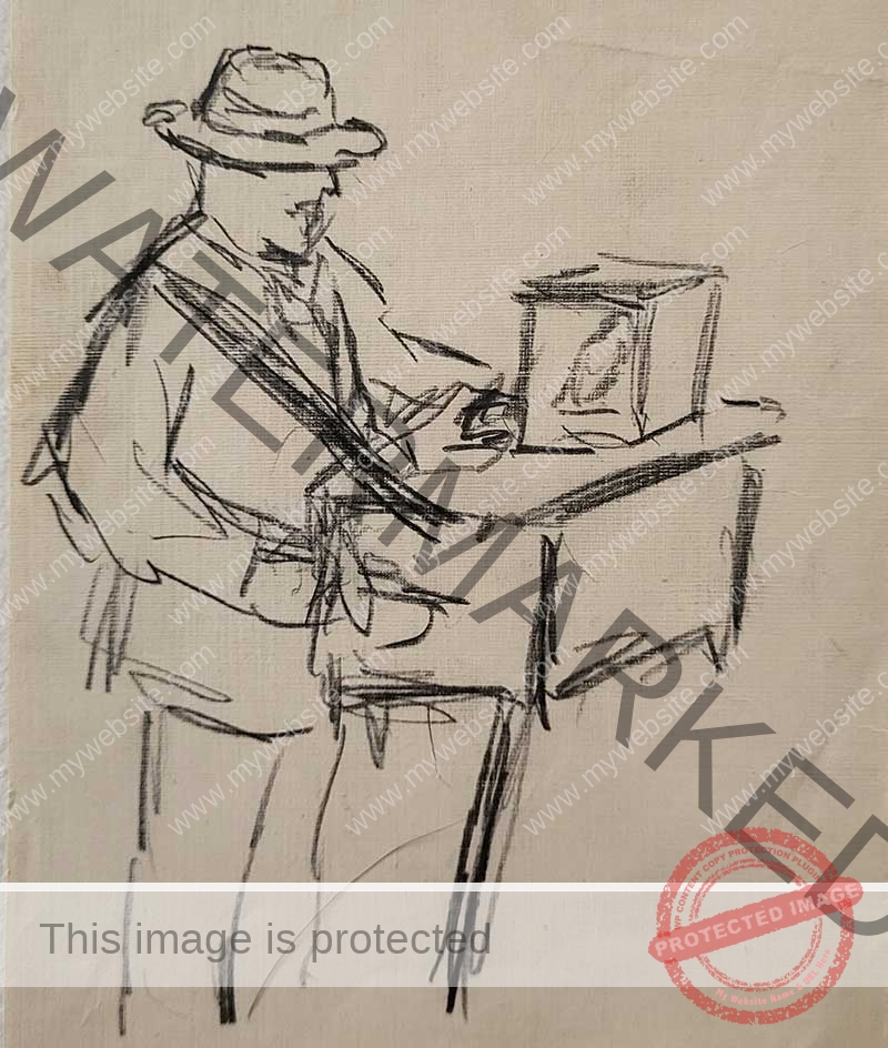 Seen for the first time, Kathleen’s sketches, like the one below of the Organ Grinder, reveal a new aspect of her skills, imagination and creativity. There is a fascinating story in every sketch. And each one shines a light on Kathleen’s interpretation of society and conjures up a cultural narrative that enhances her amazing talent.