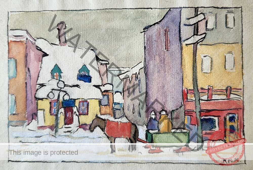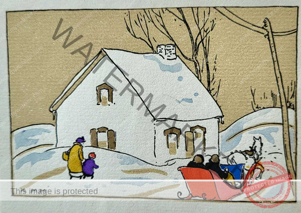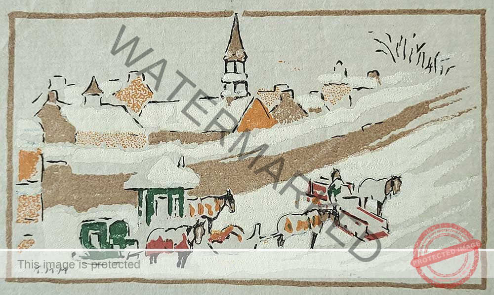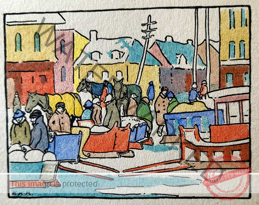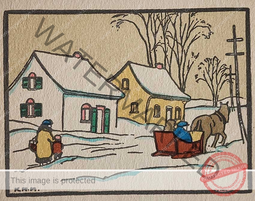 This collection of serigraphs of Christmas cards were the brainwave of A. Y. Jackson, a member of the Group of Seven Canadian painters. Jackson was an enthusiastic cheerleader for the Beaver Hall Group and approached William E. Coutts with the idea to produce the artistic designs as seasonal cards – the Canadian Painters’ Series of Christmas Cards.