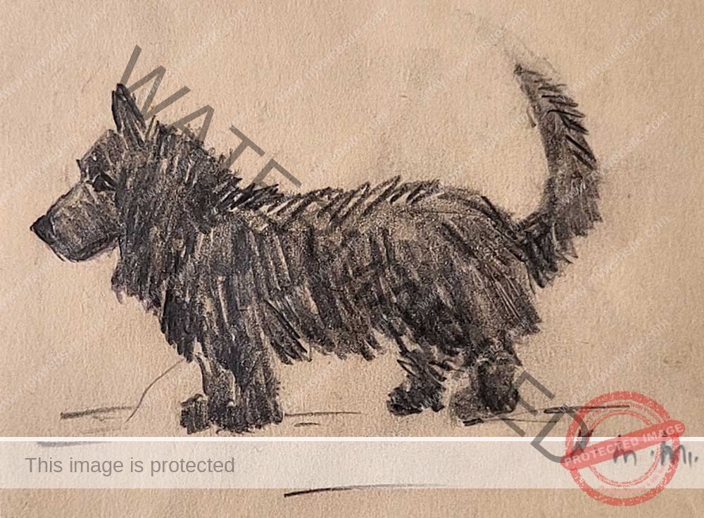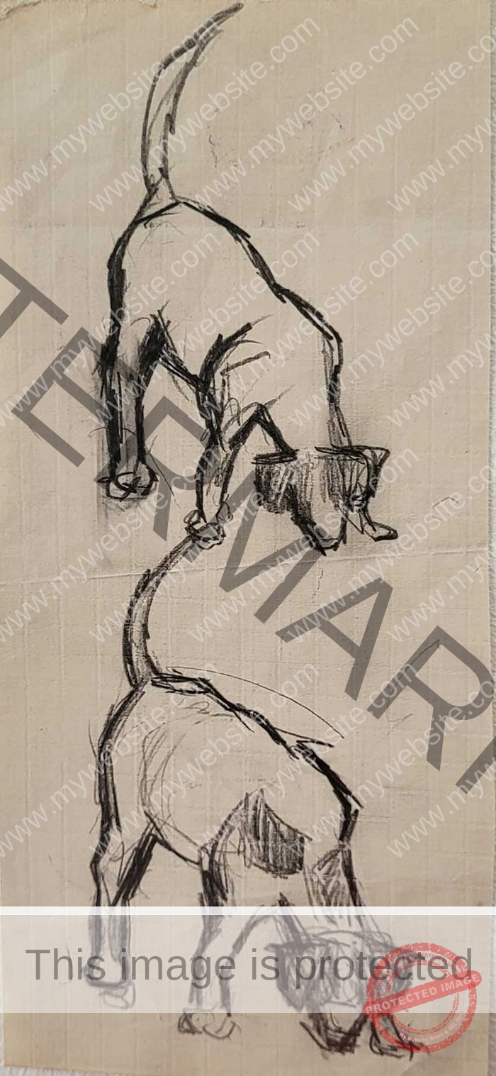 As much as other animals, Kathleen adored dogs and sketched them in various poses, mediums and colours. Sweet little Nic, above, was one of the family pets.
